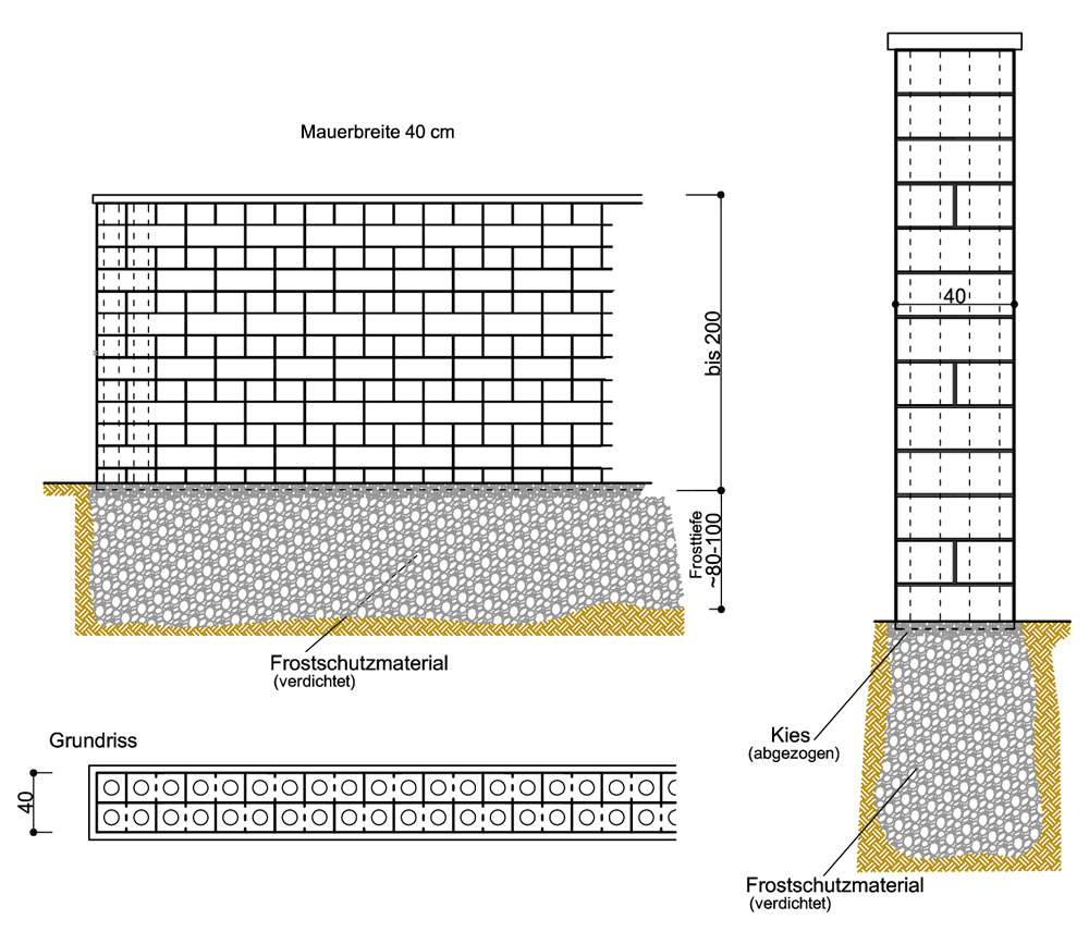 Für die Stabilität der freistehenden Mauer sorgt die patentierte Verbindung der Mauersteine mit Steckern aus Beton. Die angegebenen maximalen Mauerhöhen basieren auf einer statischen Berechnung und bieten Ihnen zusätzliche Sicherheit.