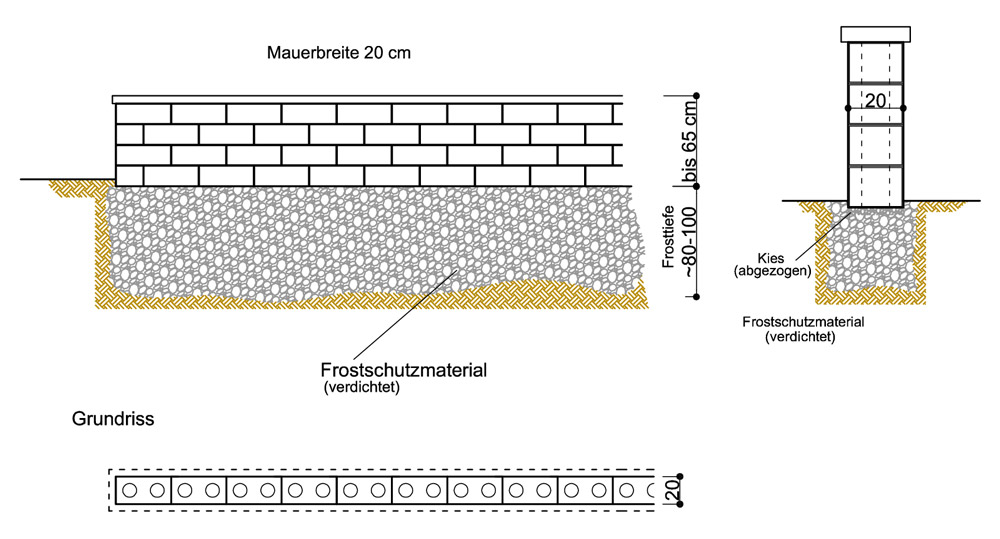 Die freistehenden Mauern werden auf eine Frostkoffer-Basis gesetzt und die nächste Steinlage mit den Steckern verbunden. Dazu benötigen Sie weder Mörtel noch Spezialwerkzeuge. Die Abdecksteine oder die Abdeckplatten sind passgenau in das System integriert und bilden einen eleganten Mauerabschluss.